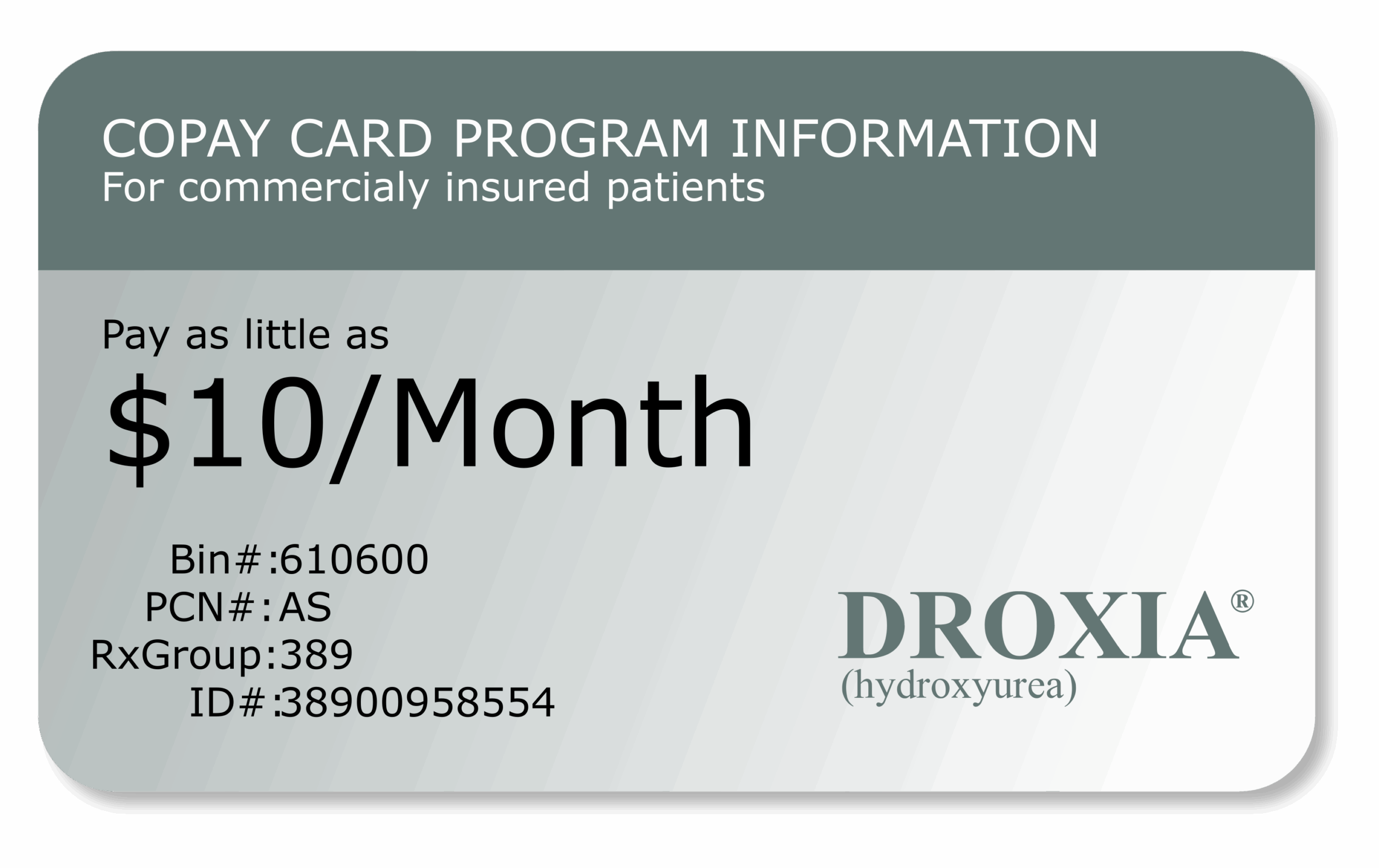 Offer valid for commercially insured patients who have a valid DROXIA® prescription. No substitutions permitted.